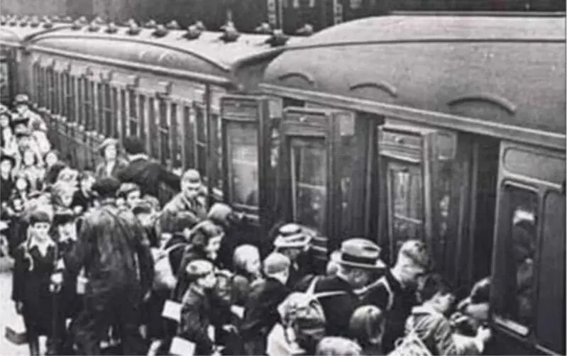 Nicholas embarcando crianças em um dos oito Czech Kindertransport.