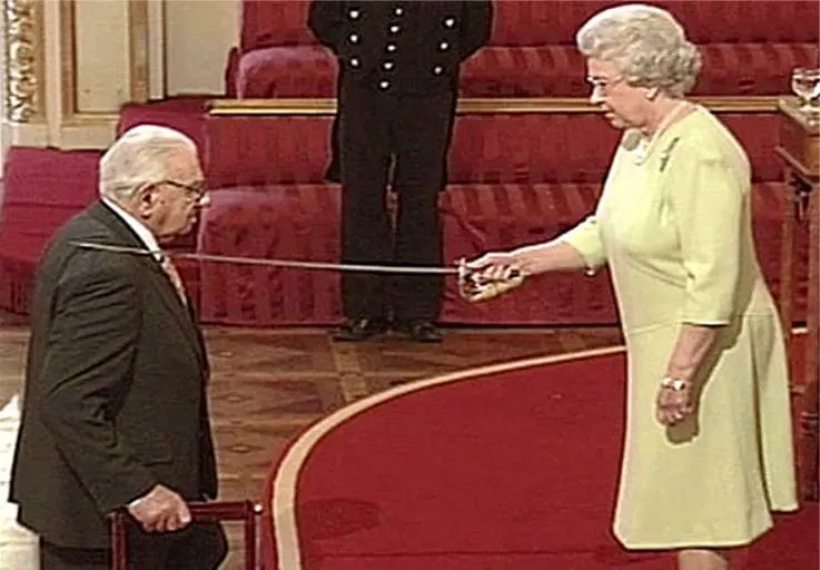 Nicholas sendo nomeado Cavaleiro pela rainha Elizabeth II