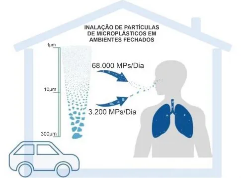 - Um adulto pode inalar cerca de 68 mil microplásticos por dia
