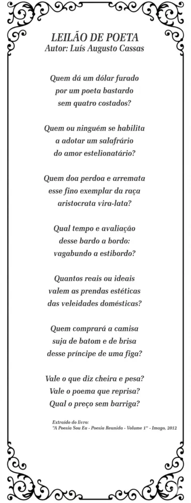 Neste POEME-SE!, o Almanaque do Estudante apresenta-lhes “Leilão de Poeta“, do autor, um poema que escancara o ofício poético, questiona o valor da arte e nos obriga a refletir sobre o lugar da palavra em tempos de indiferença.