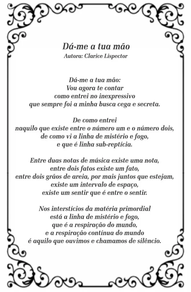 Preparem-se para sentir a coragem do vazio, o peso da luz e a verdade exata que se esconde no invisível. Que o poema de Clarice Lispector ilumine seu dia e convide à reflexão sobre as sutilezas da vida!