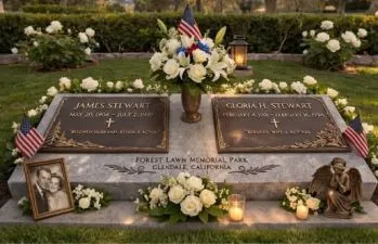 Eles estão enterrados lado a lado no Forest Lawn Memorial Park em Glendale, Califórnia.