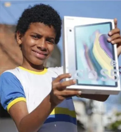 A história chegou até a própria Samsung, que autorizou a loja a presentear Guilherme com um tablet.